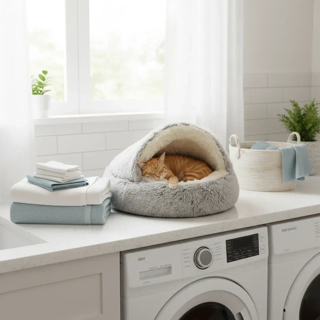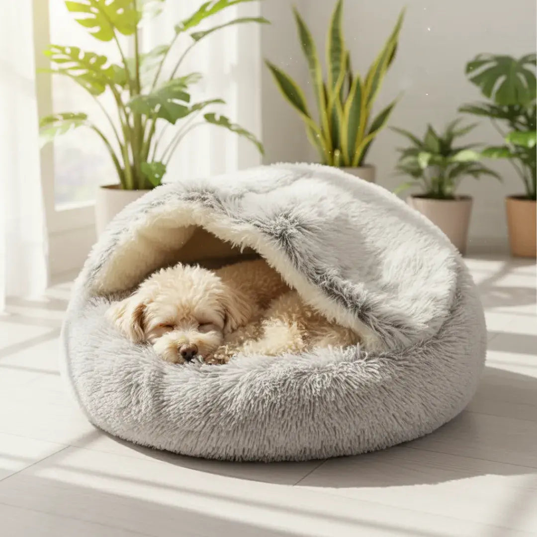 🔥 電気を使わずに暖かさを保つ仕組みです。たっぷりの詰め物と高密度の長毛素材が、ペット自身の体温を空気の層に閉じ込め、熱を逃しません。安全かつ経済的に、冬でもポカポカの環境を提供します。